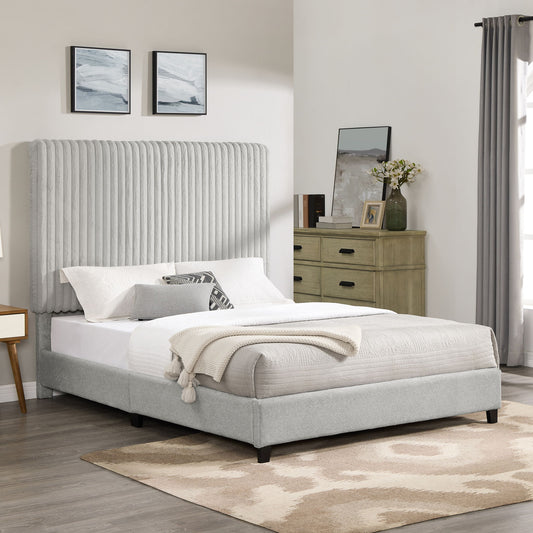 Queen Size Minky Stone Upholstered Platform Bed