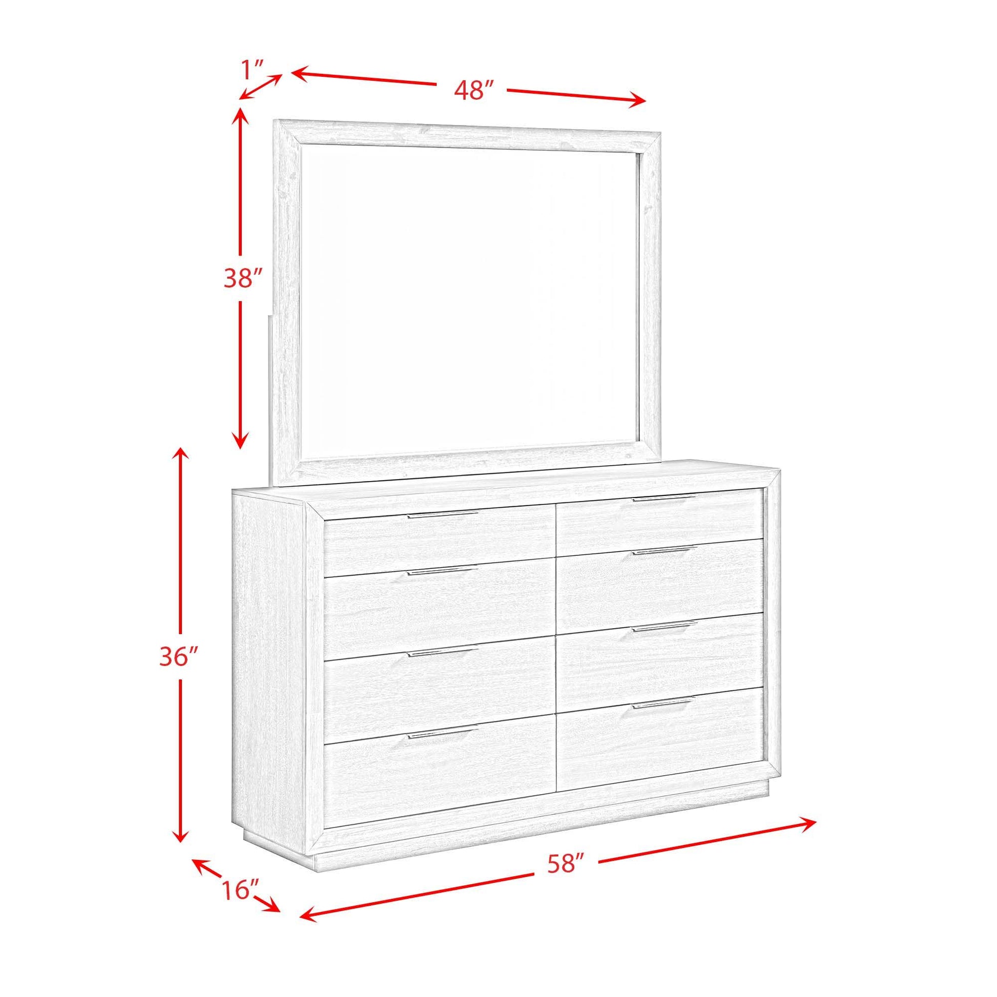 The Arcadia 8-Drawer Dresser combines modern style with practical functionality. The eight spacious drawers provide ample storage space for all your clothing and accessories. The top drawers are lined with black felt, perfect for delicate items or jewelry, while the bottom drawers features a cedar veneer lining to protect your garments from moths and other pests. The metal handles have a nickel finish, adding a touch of elegance to the overall look.