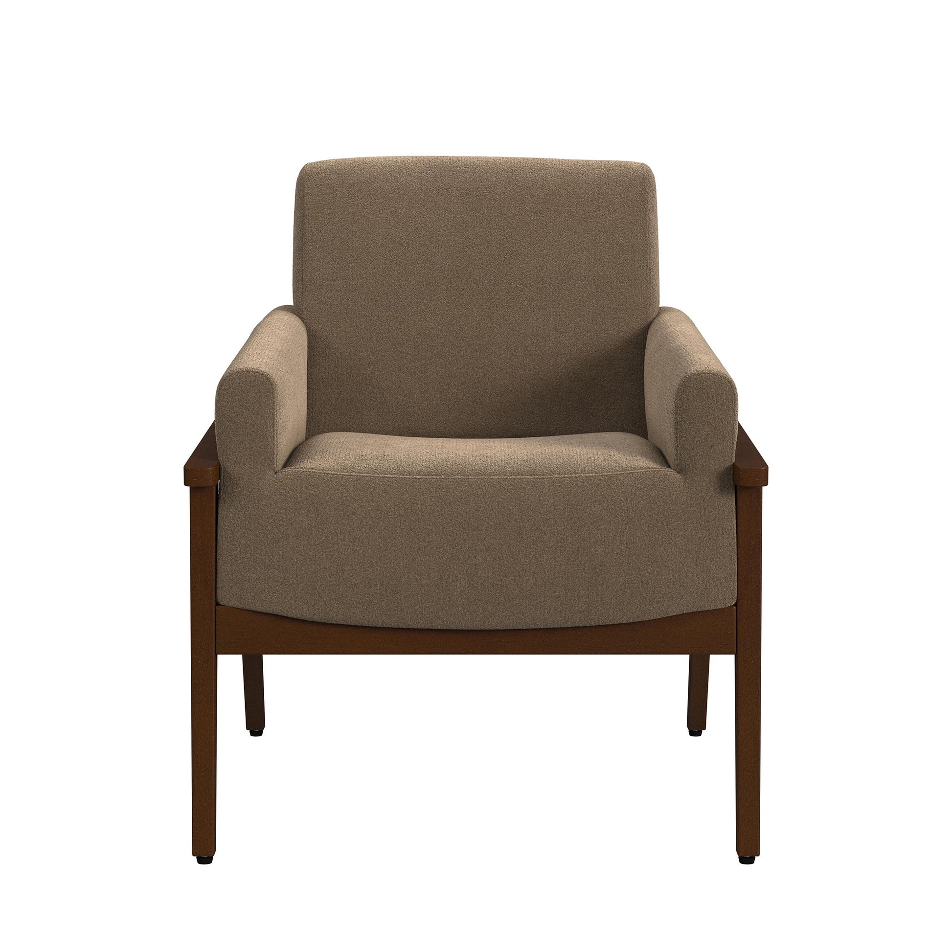 Accent your home with the swanky mid-century modern style of the Ava Accent Chair. Built with durability in mind, this piece is constructed of quality solid wood framing, durable polyester upholstery, and choice pocket coil seating, ensuring longevity throughout regular use. The exposed wood frame in a rich finish highlights skillful craftsmanship, perfectly highlighting the clean lines formed by the knife-edged cushions. For an accent chair that is as uniquely stylish as it is skillfully designed, the Ava Chair delivers.