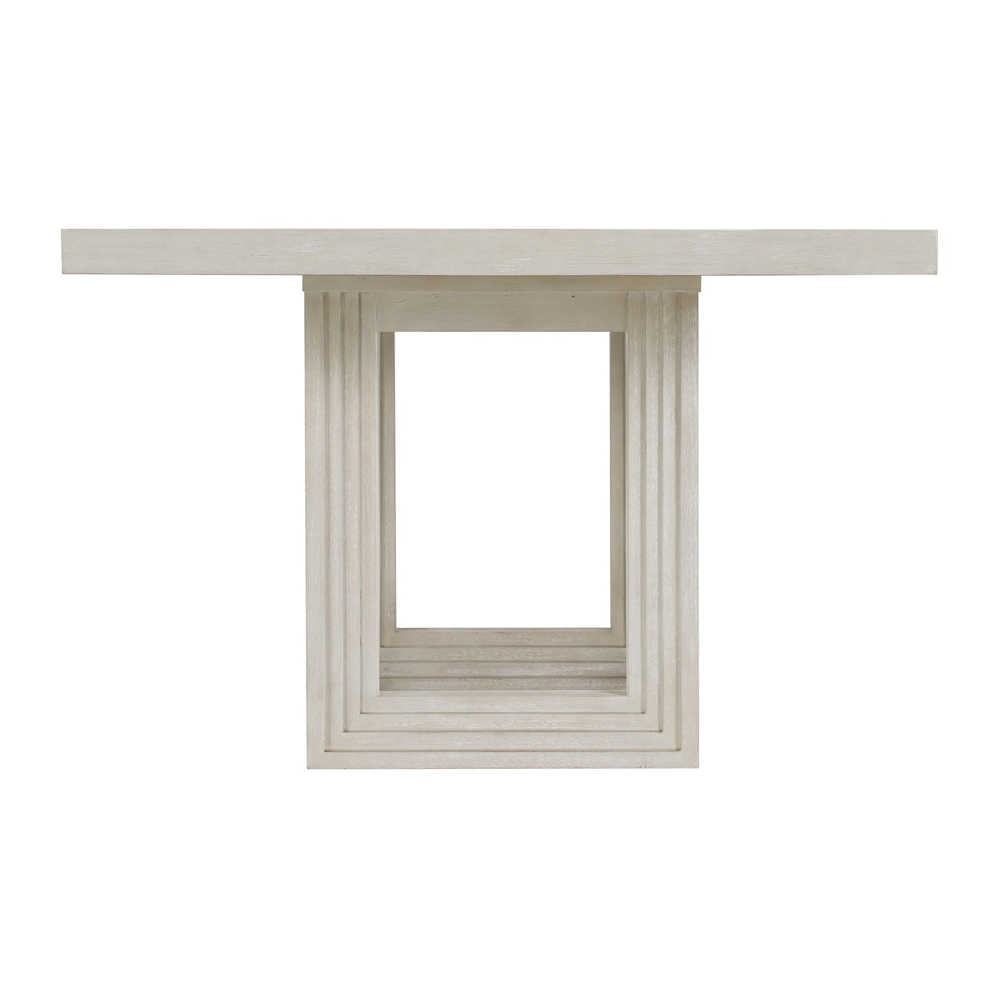 Introducing the Avalanche Counter Table, a striking blend of modern aesthetics and functionality. Featuring an 8MM glass insert and adorned with raised geometric patterns, it showcases contemporary elegance. The antique white finish enhances its timeless appeal, while the double U-shaped base provides stability and a stylish silhouette. A center square cut-out adds a unique touch to its design, perfect for creating a sophisticated dining atmosphere. Ideal for both casual meals and entertaining, this table combines practicality with a sleek, modern style that complements any dining space effortlessly. Elevate your home decor with the Avalanche Counter Table, where style meets substance beautifully.