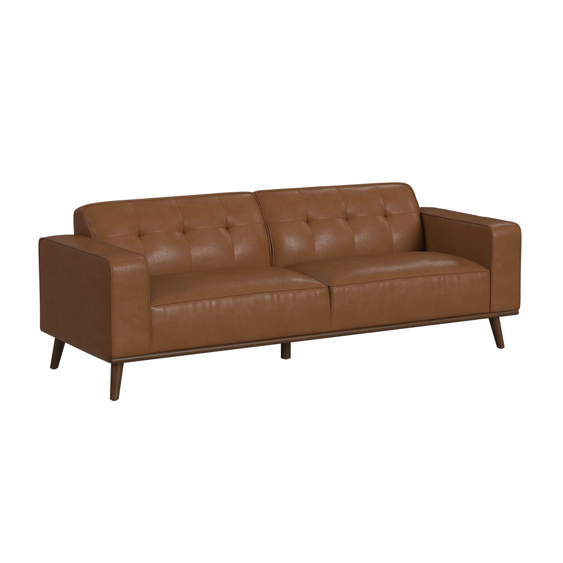 The Destiny Living Room Set exudes the coveted charm of mid-century modern style. Built with framing of quality solid and engineered wood that is full upholstered in quality faux leather, this collection is built for durability. Comfortable foam cushioning, decorative tufting on the backrests, and track arms forming sleek, modern lines culminate to mark thoughtful design, while exposed front rails and wood legs highlight excellent craftsmanship. For a refined and sleek addition to your living space, the Destiny Living Room Set delivers in quality and style.