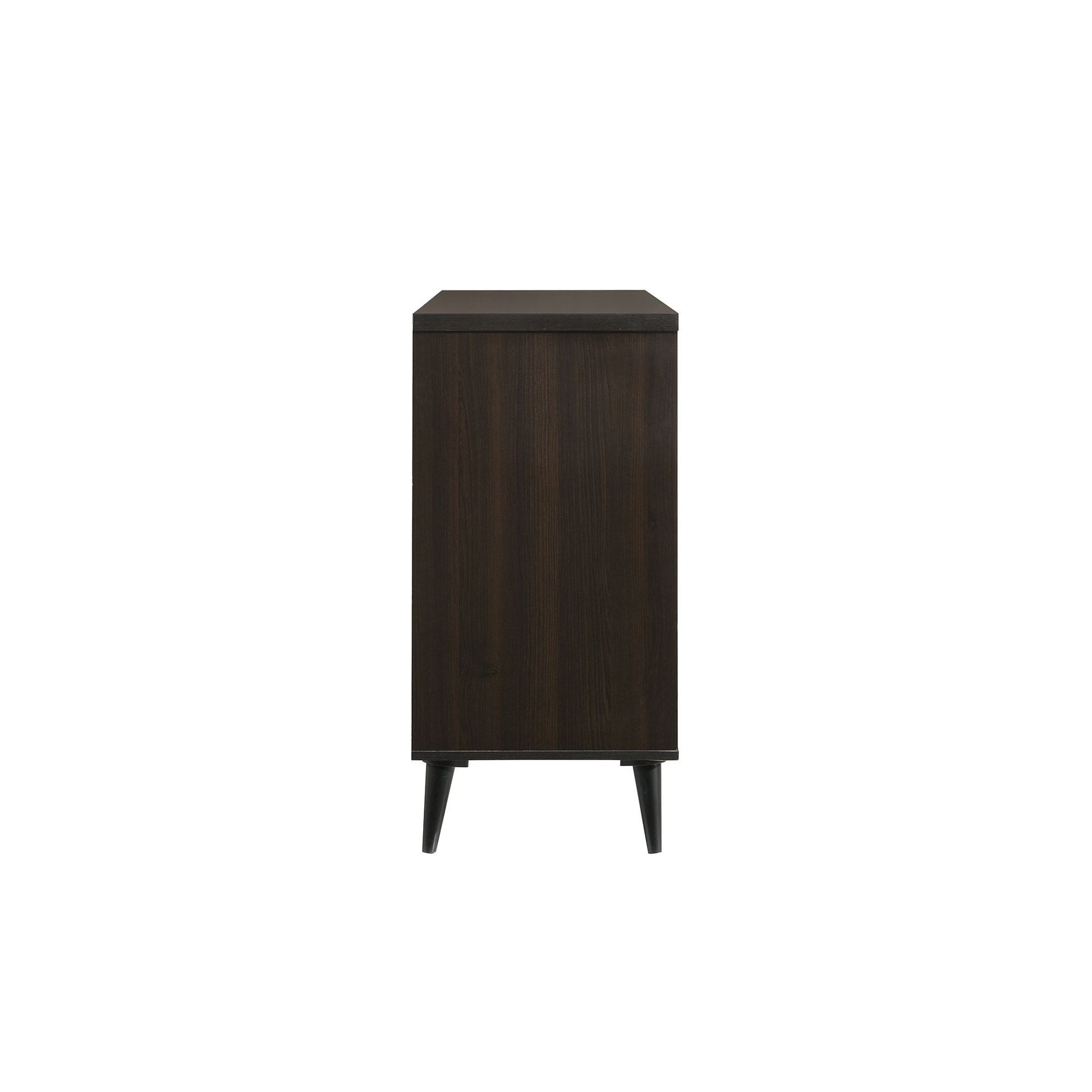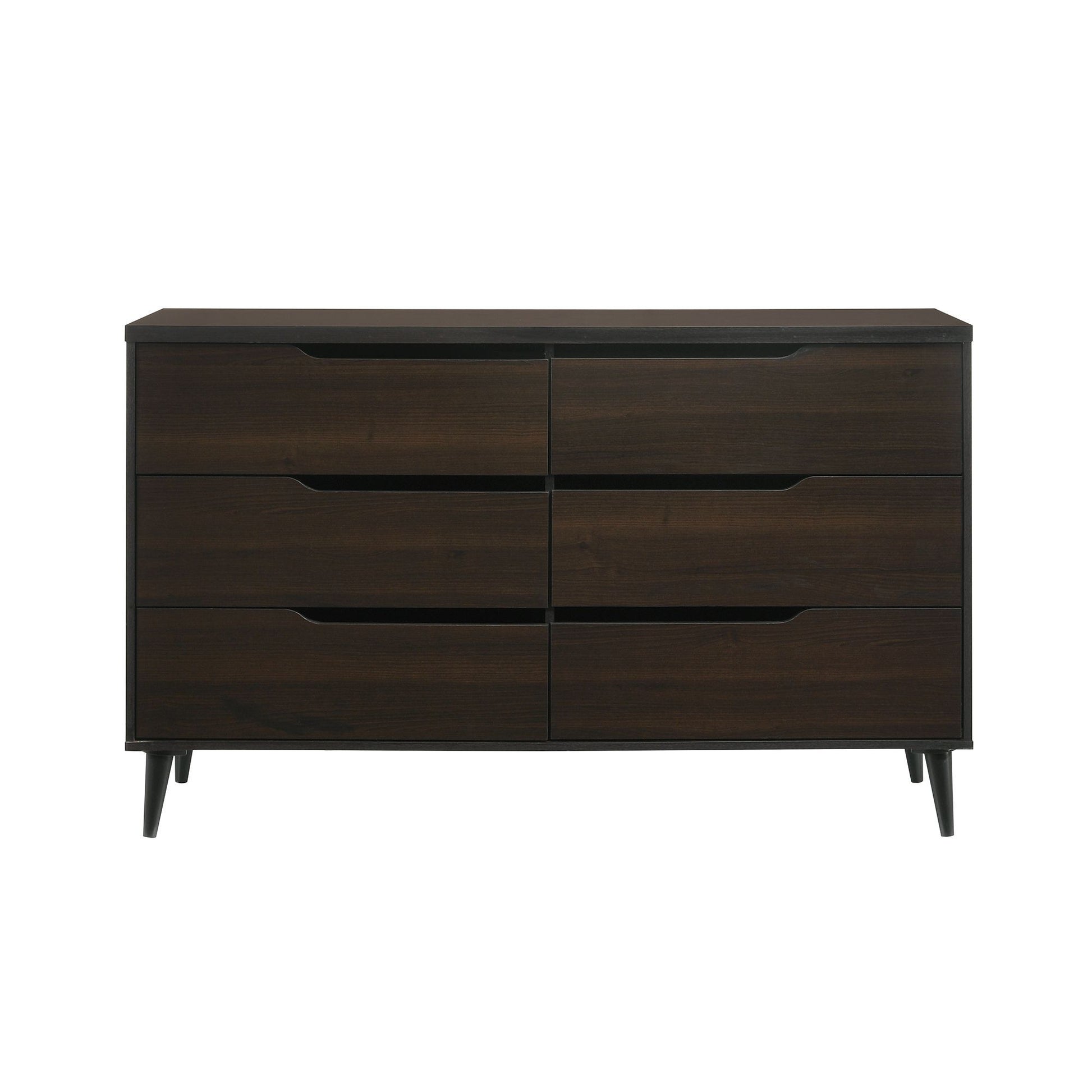 Enhance your bedroom with the sleek and modern Ernesto Dresser, designed to offer both style and functionality. Featuring six spacious drawers, this dresser provides ample storage for all your essentials. The unique cutout drawer handles add a contemporary touch, while the rich espresso finish showcases beautiful wood grain detailing. Supported by angled legs, the Ernesto Dresser offers a stable and stylish base that complements any room. With interlock drawers for added durability, this piece effortlessly combines modern aesthetics with practical design, making it a perfect addition to your home.