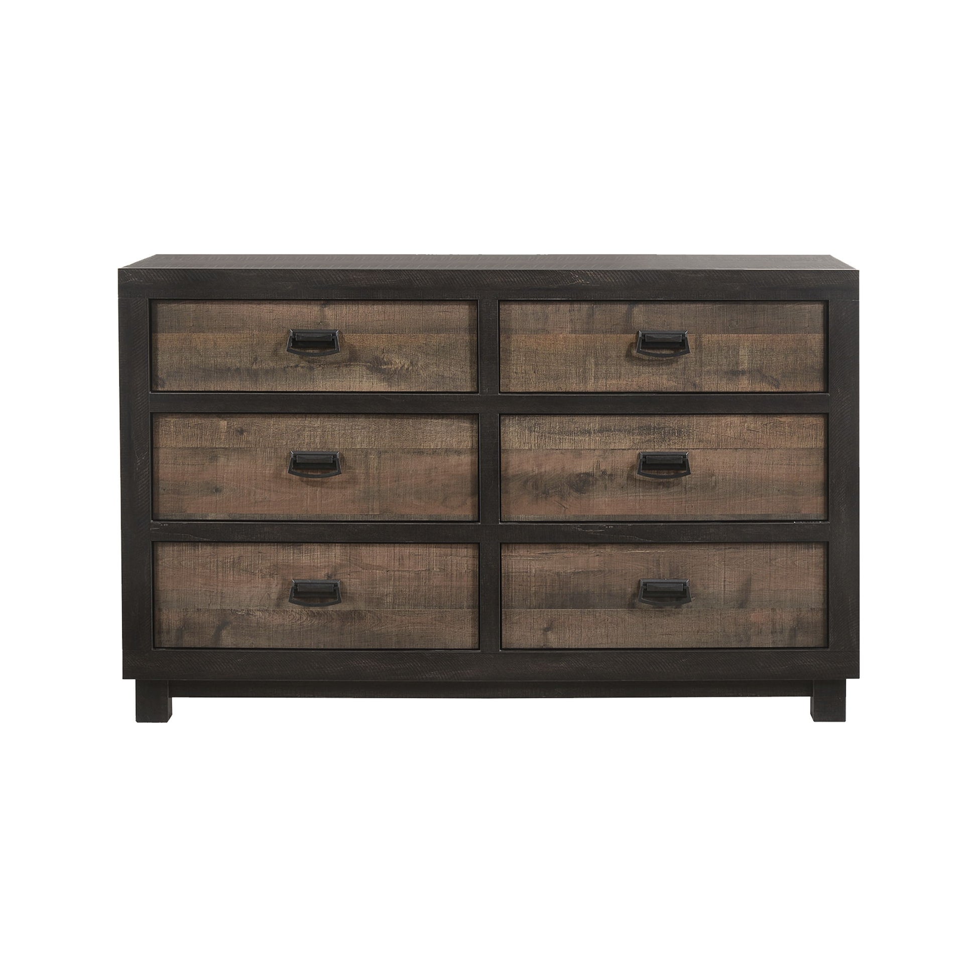 The Harlington 6-Drawer Dresser will add more than just function to your bedroom! This bedroom dresser comes with six, large spacious drawers; perfect for keeping all of your belongings neatly stored away. The top drawers are felt lined, which means you can store your more delicate belongings without worry. The bottom drawers features a dust proofing layer to help protect your belongings. The unique finish on this dresser is very striking with the framing in a dark chocolate color, while the drawer fronts are a complementary lighter finish. Completing the look are the dark nickel drawer pulls and square feet.
