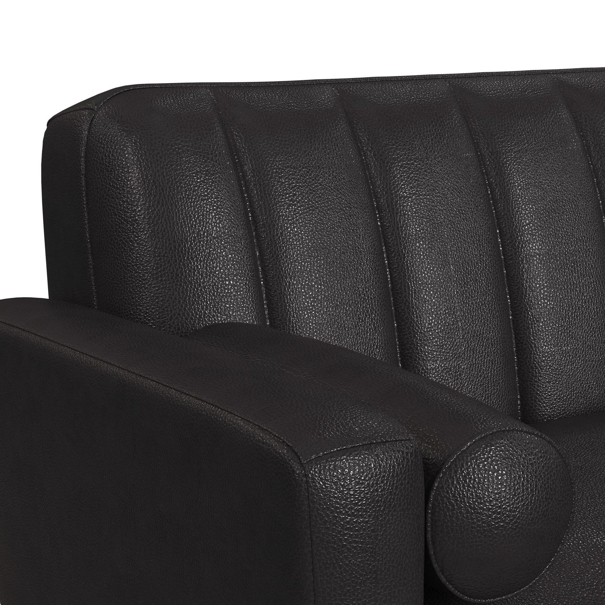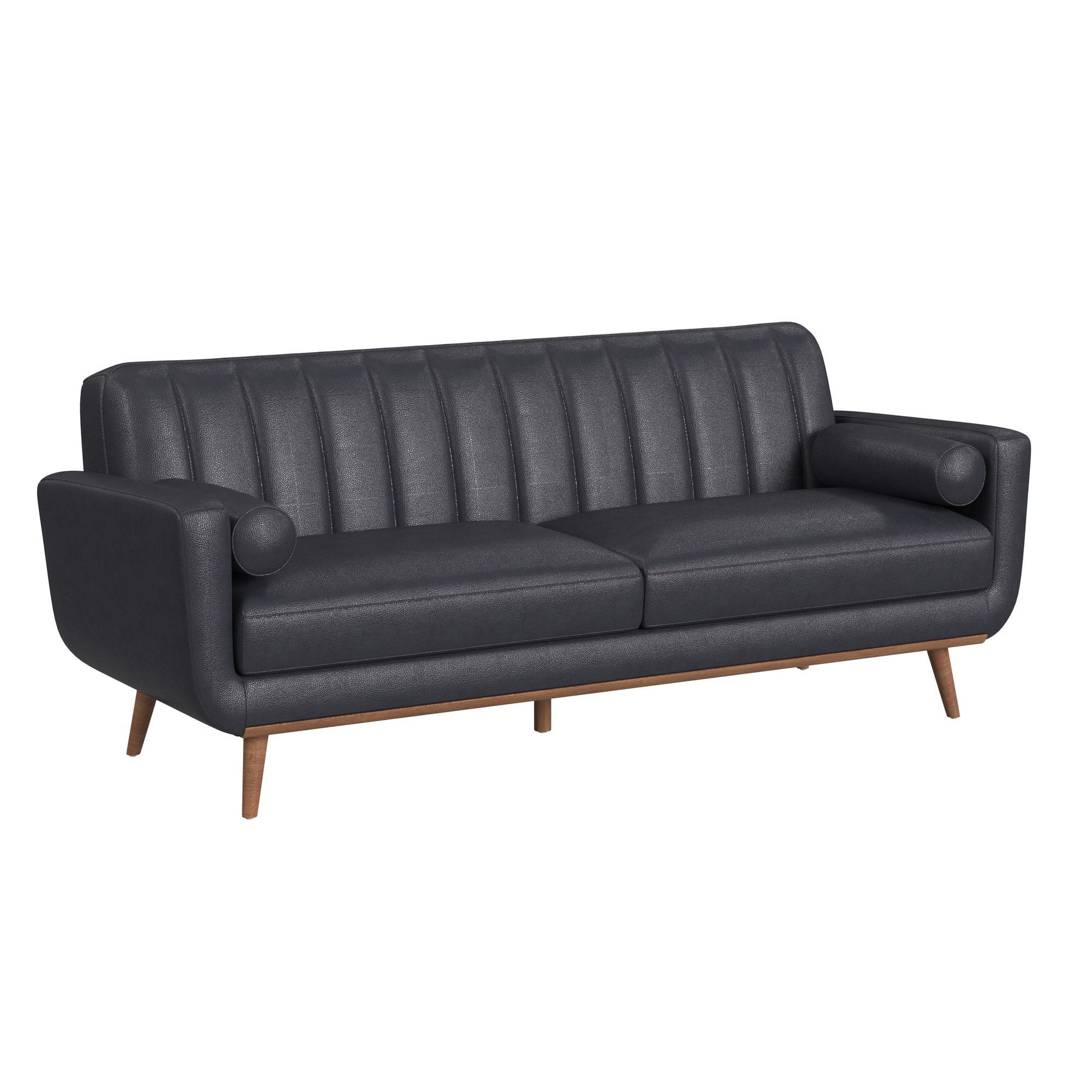 The Horizon Living Room Set exudes the coveted charm of mid-century modern style. Built with a frame that is fully upholstered in quality faux leather, this collection is built for durability. Comfortable foam cushioning, decorative tufting on the backrests, included bolster pillows, and track arms forming sleek lines culminate to mark thoughtful design, while exposed front rails and wood legs highlight excellent craftsmanship. For a refined and sleek addition to your living space, the Horizon Living Room Set delivers in quality and style.
