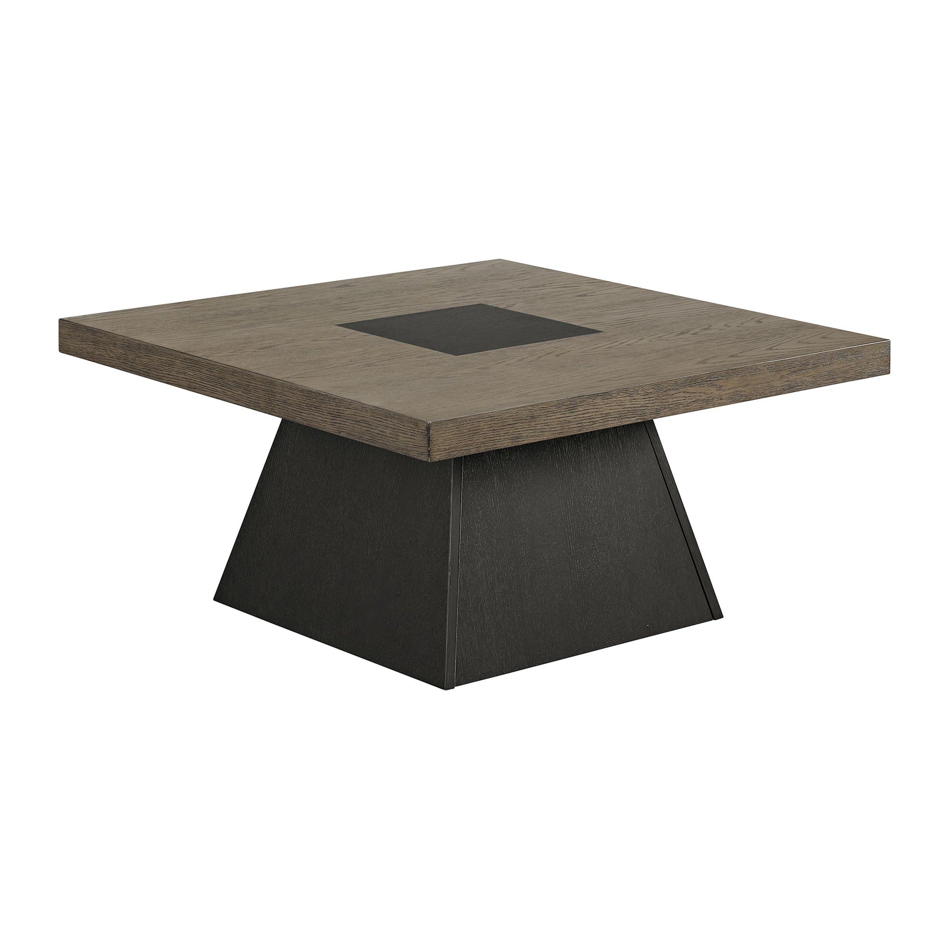 Distinguish your home character with the grand presence of the Jemma Table. Set in two harmonizing and inviting tones with an elegant oak-veneer, this table thick top and definitively geometric shape easily becomes a statement piece in any living space. This coffee table robust base gradually widens downwards, creating a sturdy and reliable foundation, while the spacious tabletop allows for the staging of various items, like table lamps, decorative trinkets, or your most loved family photos. For a modern addition to your home treasured living area, the Jemma Table is sure to please.