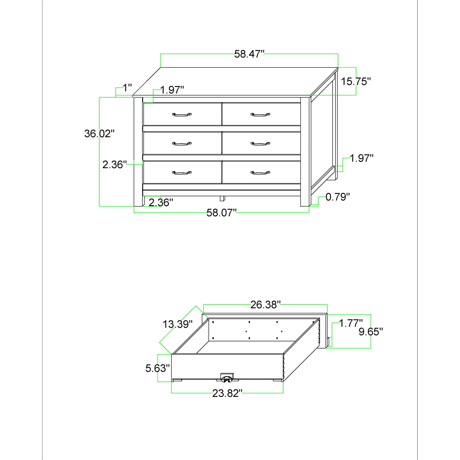 - Design: Contrasting black top offers a modern twist to the classic dresser.