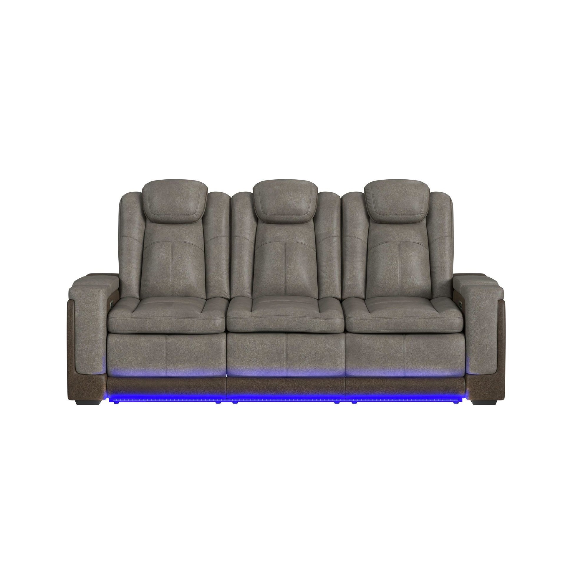 Unwind in luxurious comfort with the Lantana Sofa, a perfect blend of modern functionality and timeless style. Featuring power motion reclining with an adjustable power headrest, this sofa ensures optimal relaxation. The dual-tone upholstery adds a stylish touch, while the sofa's drop-down table with built-in cup holders keeps your essentials close at hand. Enjoy added convenience with the sofa's reading light, power strip, and LED light. Complete with hidden storage in the arms and USB ports, the Lantana is designed for effortless living.