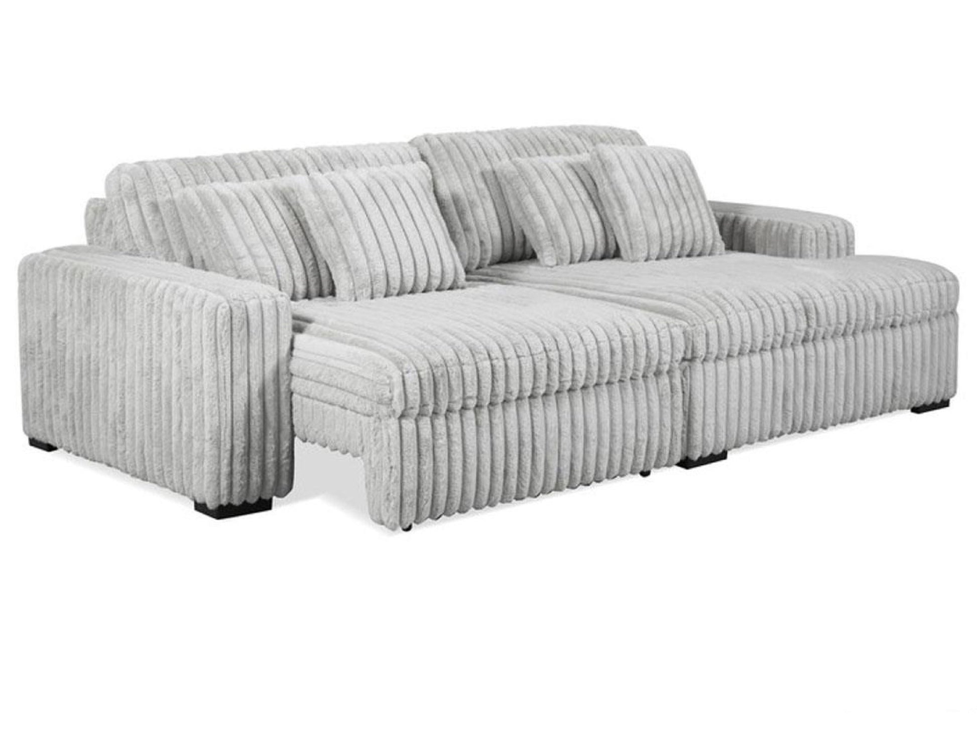 MANWAH Presley Right Arm Facing Chaise with Quality Foam Cushions, Track Arms, Polyester Ribbed Fabric 2 Pillows Included, Spot Clean Recommended, Color: Fog