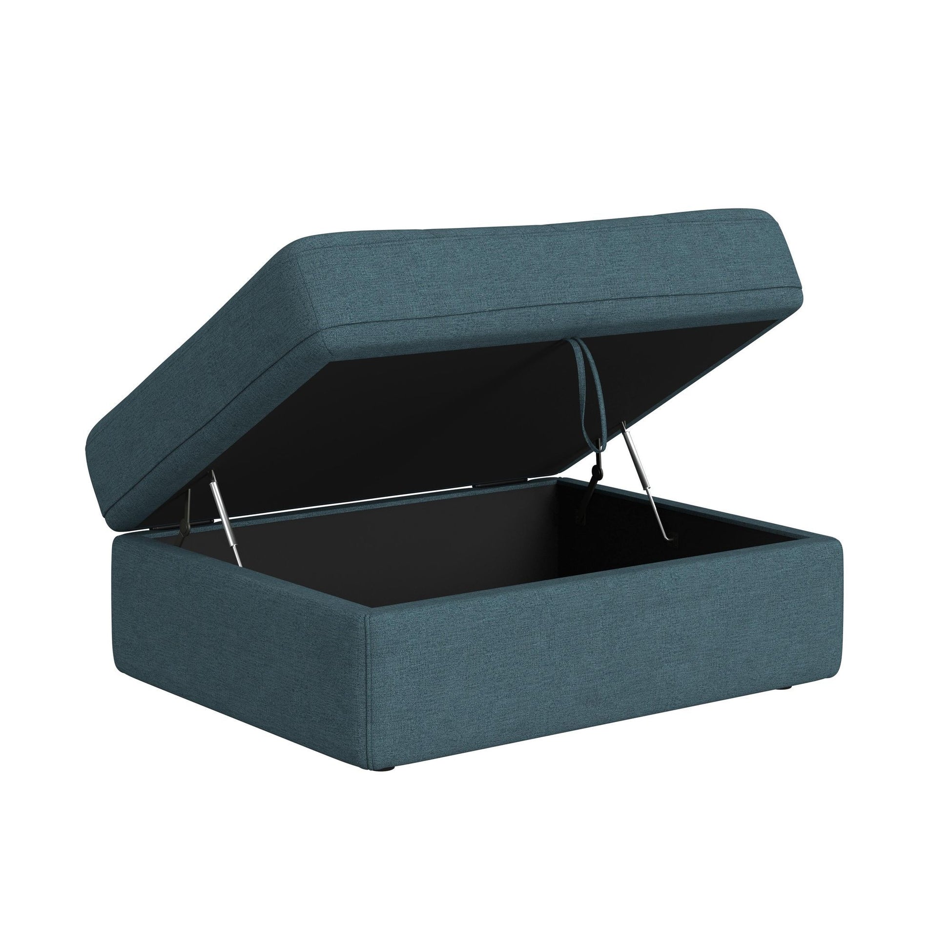 Accent your living space with the versatile style of the Options One Storage Ottoman. The flexible nature of this piece adapts to various uses, like additional seating, a convenient footrest, or an impromptu coffee table. Integrated hidden storage helps to reduce clutter by keeping your living room essentials out of sight, yet comfortably within reach, while supportive pocket coil springs and plush foam cushioning make this piece a comfortable place of repose. Sleek, smart, and versatile, the Options One Storage Ottoman is a quality and practical addition to your living space.
