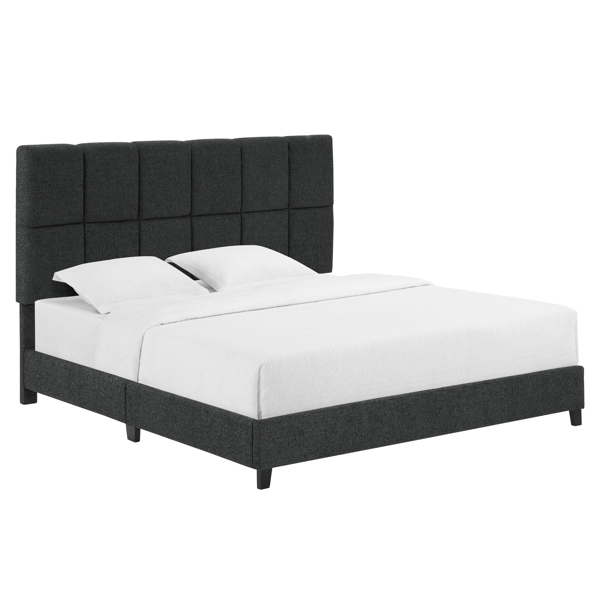King Size Squares Upholstered Platform Bed - Gray