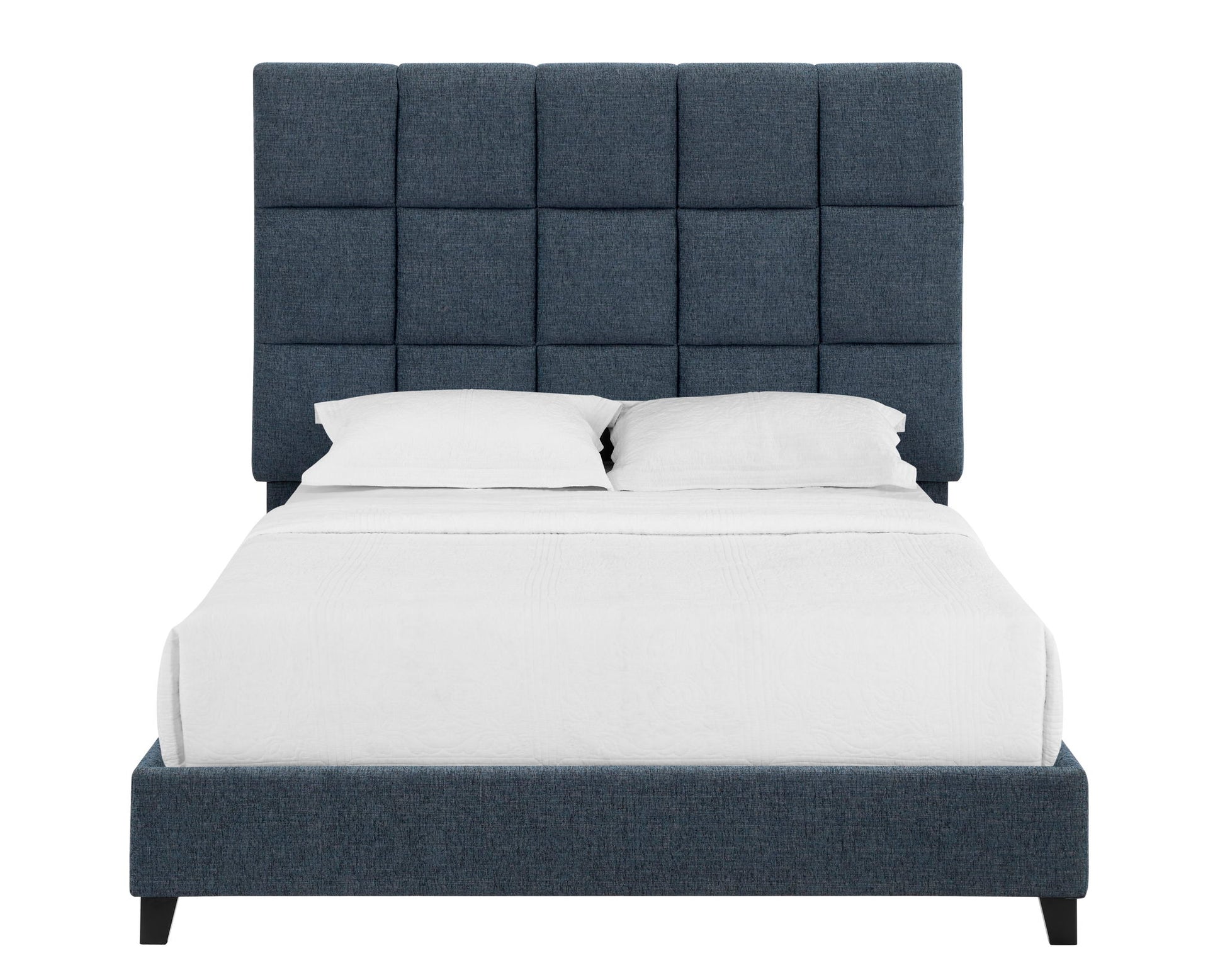 Queen Size Squares Upholstered Platform Bed - Navy Blue Denim